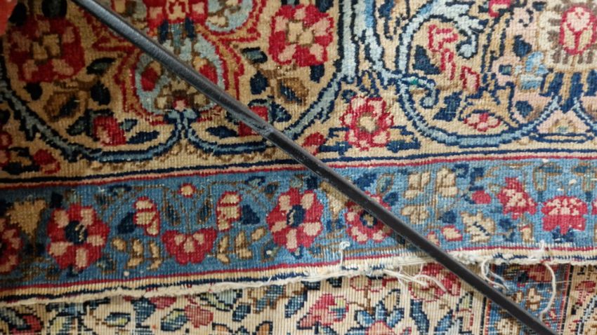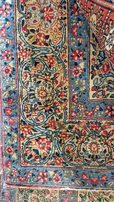 This is most likely machine made. Good overall condition with some wear/uneven wear. No signs of holes or tears. Could do with a clean. General wear and tear.
