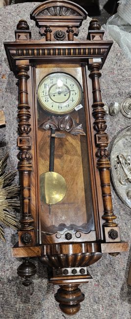 Late 19th/early 20th century Vienna regulator style wall clock, the circular dial with subsidiary seconds dial in walnut case with turned decoration