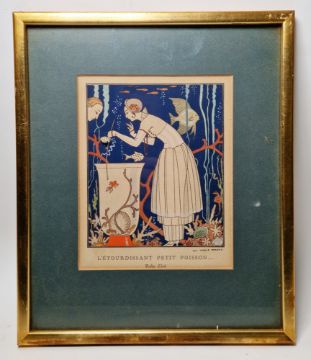 Georges Barbier (1882-1932)  Set of four handcoloured stencils Fashion plates including 'L'Etourdissant Petit Poisson', each 19cm x 11cm framed and glazed (4)
