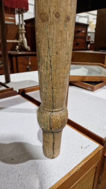 Surface scratches, scuffs and knocks. Splits to two of the legs, drawer is dovetailed with timber base and is original to the piece. Some small areas of old worm on edge of top and area of frieze. No broken joints. Height from floor to frieze 58.5cm