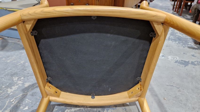 In the manner of Hans J Wegner for Johannes Hansen a set of four model JH503 "The Chair" dining chairs with black leatherette covered seats, 76cm high x 63cm wide x 53cm deep (4)