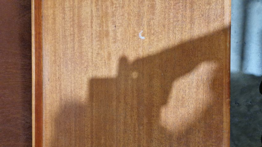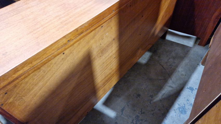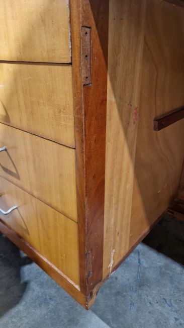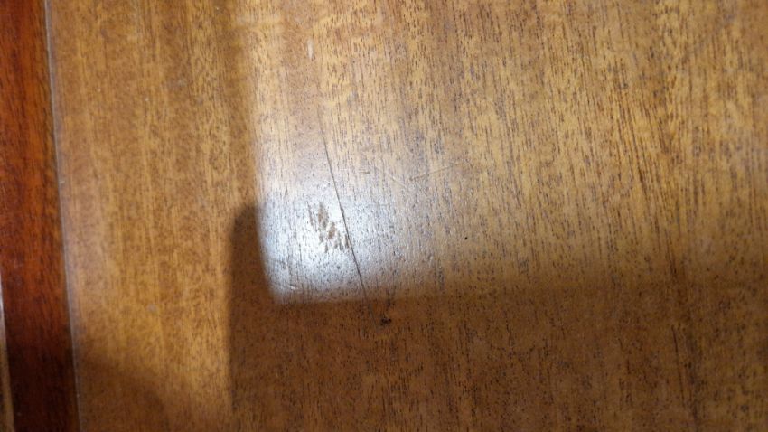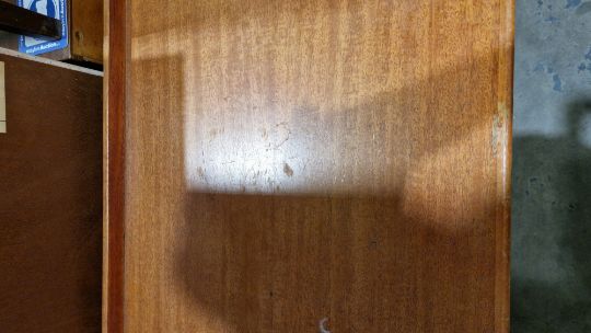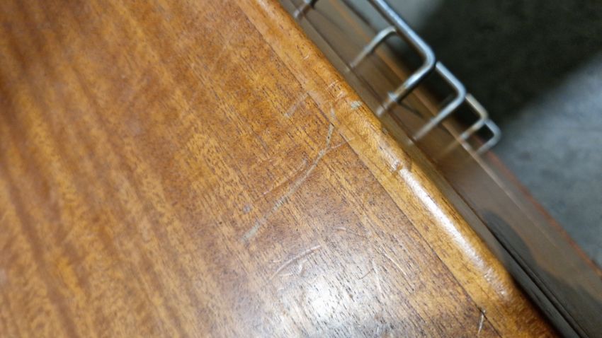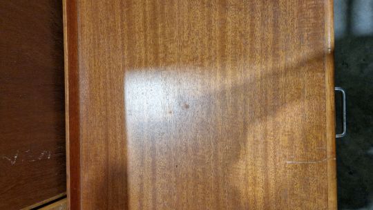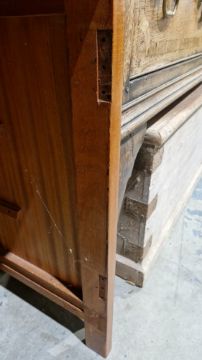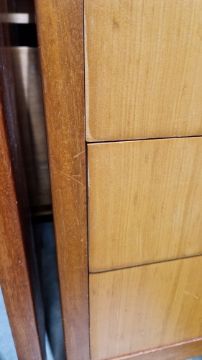 Some surface scratches, scuffs and knocks. Recess has hinge cutouts, appears there was a cupboard or similar there at some point which has been removed. General wear and tear.
