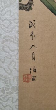 Pair Chinese watercolour drawings on silk  Bird and butterfly on flowering branches, character marks and seal mark, each 45cm x 23cm, framed and glazed and another, bird on flowering branch (3)