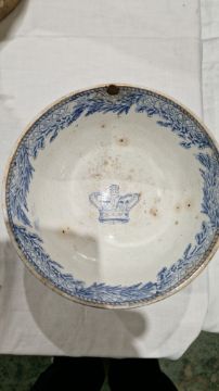 Mess 41 bowl - Surface marks, chip to rim, crazing throughout, discolouration/browning in places, imperfections to glaze. General wear and tear.