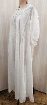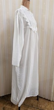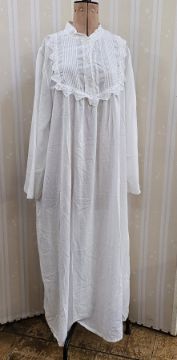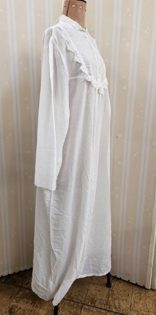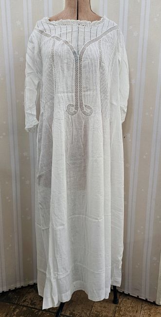 An Edwardian white cotton nightgown with pintuck and lace inserts to the bodice, scoop neck, frilled neckline, three quarter length sleeves with pintuck and lace detail, and another nightdress white cotton, pintuck bodice with lace frill, full length sleeves (2)