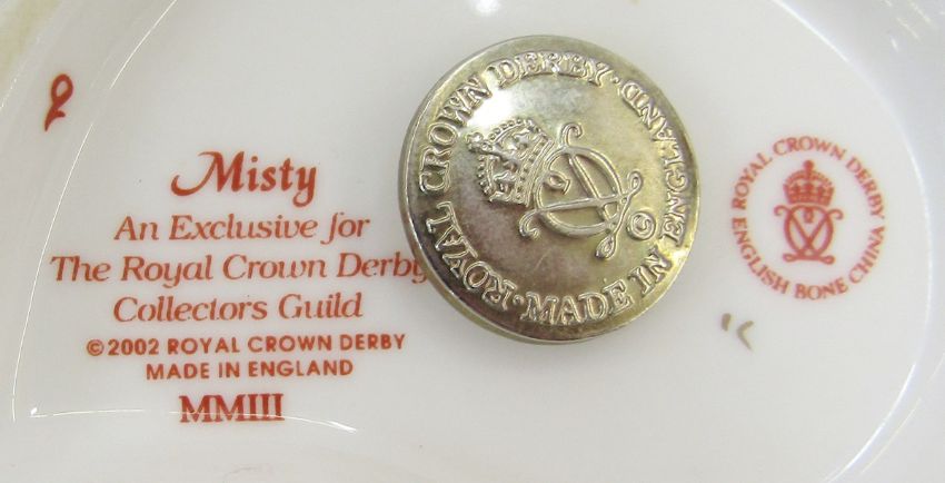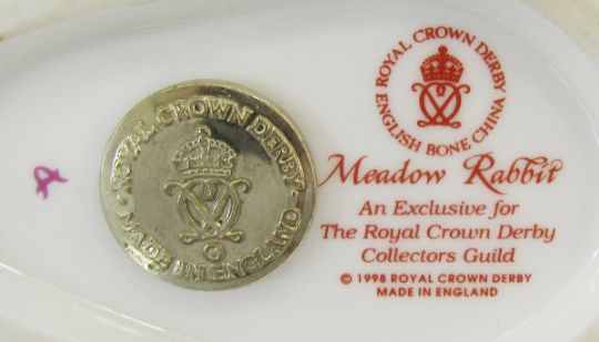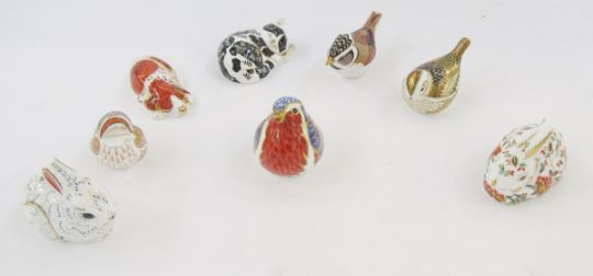 Eight Royal Crown Derby animal and bird paperweights to include Bunny, Misty, Meadow Rabbit, Puppy, Collectors Guild Crested Tit, Collectors Guild Fire Crest, Teal Duckling and a robin (8)