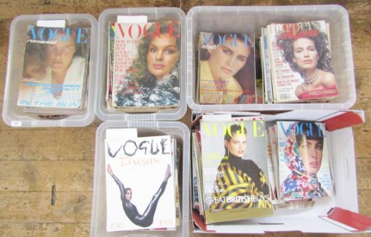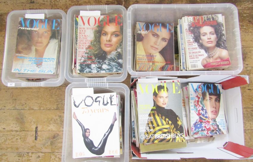 Quantity of Vogue magazines from 1970, 1971 through to 1977, '78, '89, '90's, these aren't necessarily full runs, and a quantity of Harpers & Queen (5 boxes)