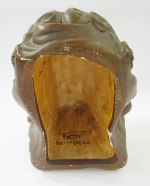 Large Art Deco plaster bust of a lady 'Yvette', reg no.858810, 34cm high