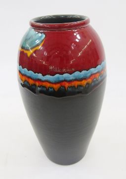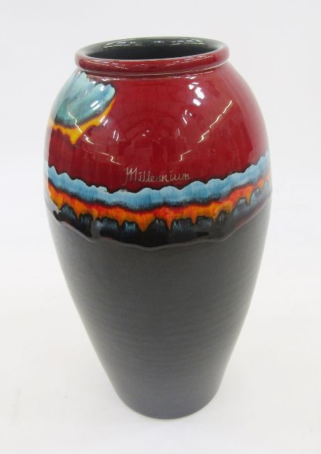 Poole pottery Millennium vase, shouldered and tapering, with glazed decoration to the neck and inscribed Millennium, from Christie's Sale 31st March 2004, no.286, artist's proofs, base with label inscribed Glass 620 300 ROR 0.1 SOAK, 34cm high