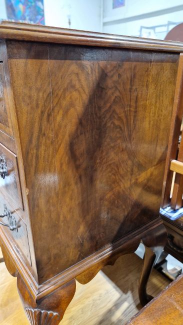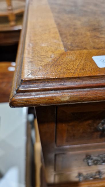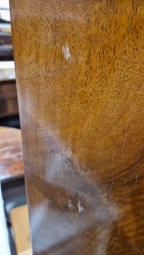 Surface scratches, scuffs and knocks. Fading/discolouration. Splits and small areas of loss to veneer, mainly to top. General wear and tear.