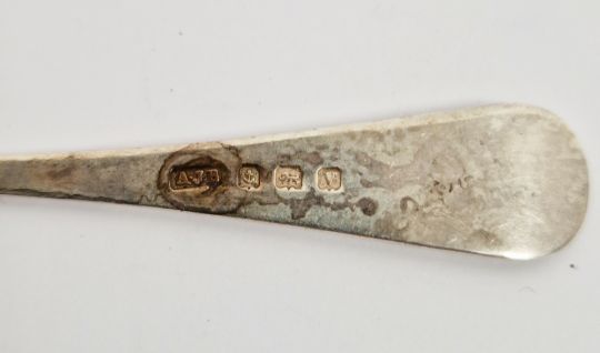 20th century Danish silver serving slice, with makers marks for Leo Alfang, together with a child's silver food push, hallmarked Birmigham,1920, 2.21 ozt gross weight (2)