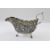 S Kirk & Son American silver-coloured metal sauceboat, having foliate scroll handle, the body allover naturalistic floral relief decorated, on shell and stepped hoof supports, 20cm long x 10cm wide, with inscription to base and labelled S Kirk & Son Co 925/1000, 10ozt approx.