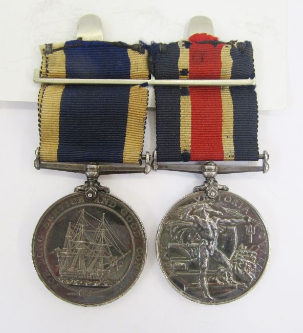 Edward VII Naval Good Shooting Medal named to "122652.W.HARTWELL.P.O.1.CL.H.M.S.CRESSY.1903.9.2 IN.B.L.". Edward VII Royal Navy Long Service and Good Conduct Medal named to "122652.W.H.HARTWELL.C.P.O.H.M.S.EAGLE.". Copy of Royal Navy service record.