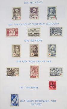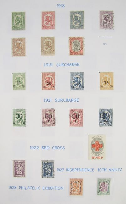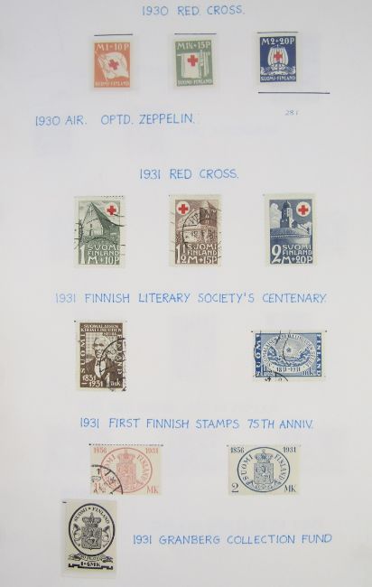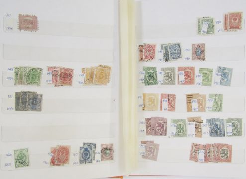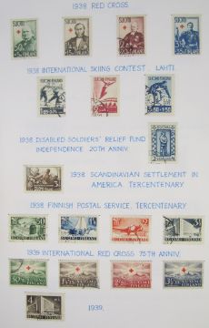 Finland stamps: Mint and used collection, from 1856 roulettes to modern, in 2 albums, stock-book and box. Definitives, commemoratives, Red Cross, parcel post, military field post, Russian and Finnish E. Karelia occupation etc. Numerous sets, booklets and mini-sheets. 100s.