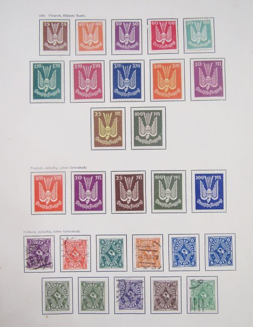 GB, German & World stamps: Unusual collection of 90+ Channel Islands covers - mostly Jersey - from German occupation period dated 1941 to 44 of various values to 3d including 1940 2d orange Postage Stamp Centenary bisect, cat £50. In addition, album of German Weimar mint and used definitives, commemoratives, official, air and relief fund plus old World album with French 1918 15c+5c Red Cross SG 378, Cat £85 seen and other higher cats and interest within. Two small catalogues included.