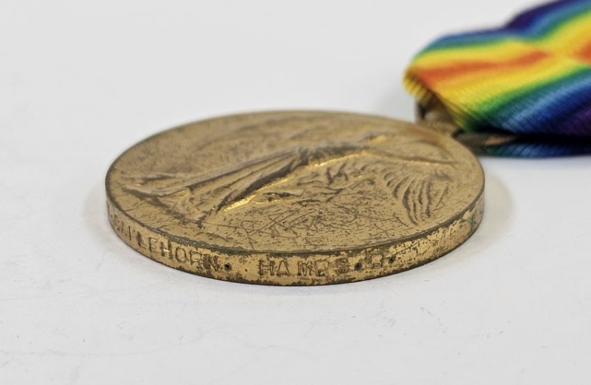 WWI 1915 Star, War Medal and Victory Medal named to "9654.PTE.W.CAPELHORN.HAMPS.R.". WWI memorial plaque named "WILLIAM CAPELHORN". Private Capelhorn, from Otterbourne, Hampshire, was killed in action at Gallipoli, 28th April 1915. With research.