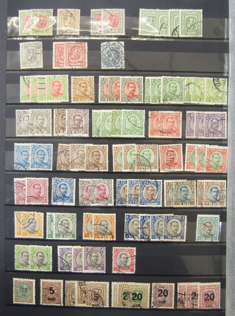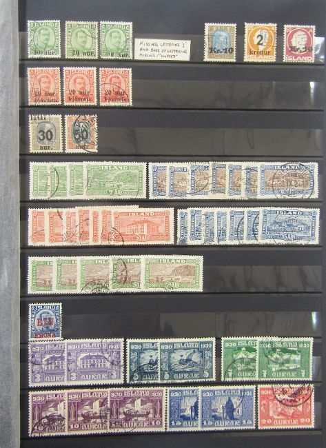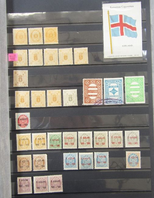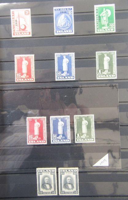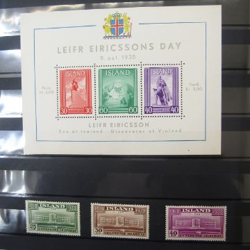 Iceland stamps: Large 64 page stock-book of mint and used definitives, commemoratives, officials, air and postcards including sets, blocks, booklets, sheetlets, se-tenant with higher cat values found in earlier issues and sets with 1938 mint Lief Ericsson's Day mini-sheet seen.