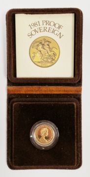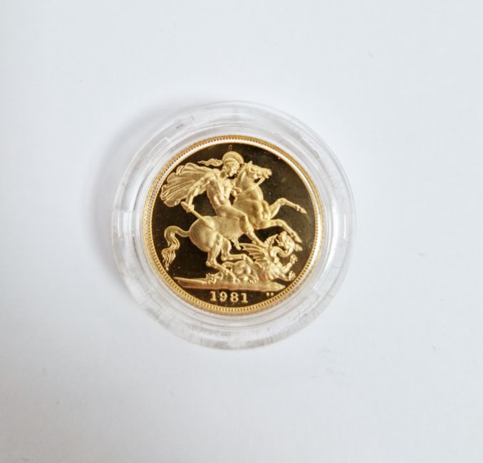 Elizabeth II Royal Mint gold 1981 sovereign in proof case