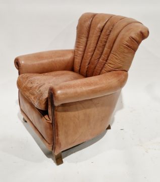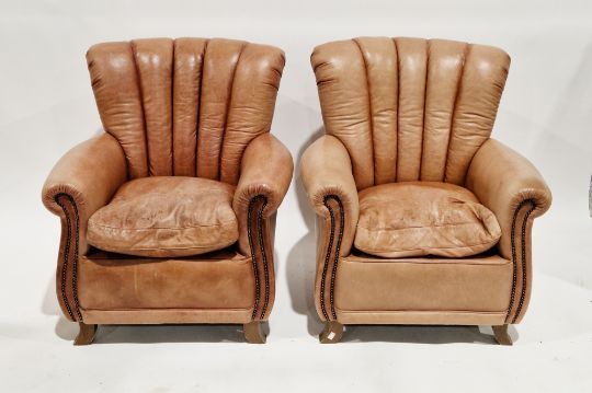 Pair of modern armchairs upholstered in leather, on short splayed supports (2)