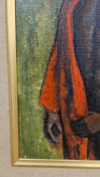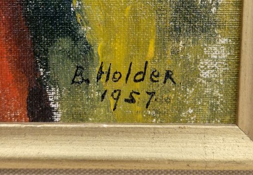 Attributed to Boscoe Holder (Trinidad and Tobago, England, 1921 - 2007) Oil on board Three-quarter length portrait of a man wearing red dressing gown, signed and dated 1957 lower right, framed, 41cm x 31cm Condition Report Good overall condition. No obvious signs of damage, restoration or crazing. General wear and tear.