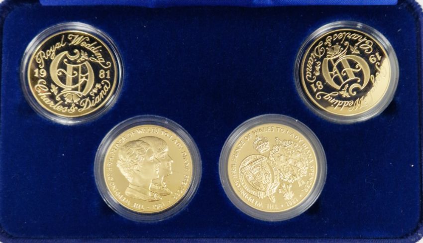 Pobjoy Mint set of four silver gilt limited edition crown medals to commemorate the Wedding of Prince of Wales and Lady Diana 1981, in case with certificate