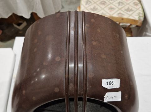 Art Deco Philco 444 people's set brown bakelite two band valve radio, 42cm high x 35cm wide