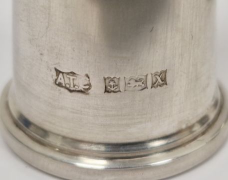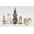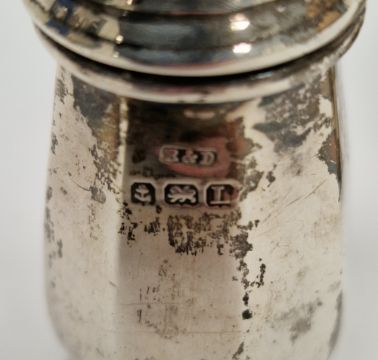 Victorian silver pepperette modelled as a caster, two other silver pepperettes, a silver mustard pot and a silver plated caster, total silver weight approx 3ozt (5) (PLEASE NOTE VAT WILL BE PAYABLE ON THE HAMMER)