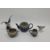 Royal Doulton stoneware part tea-service, late 19th century, impressed marks and shape numbers, comprising: a globular teapot and cover, a two-handled sugar bowl and a milk jug, all moulded in relief with bands of husks and flowerheads above pendant husks, on a mottled green and blue ground (teapot lacking end of spout) together with a Karl Ens model of a swallow and two chicks on a tree stump base, 21.5cm high and a Karl Ens model of a bird perched on a leafy branch, each with printed green Ens marks, various impressed numerals (5)  Condition Report Karl Ens - Both in good order, no damage or restoration. General wear and tear. We do not offer in-house shipping. Please try Mailboxes.com, Bidandbox.com or Mjmpost458@gmail.com