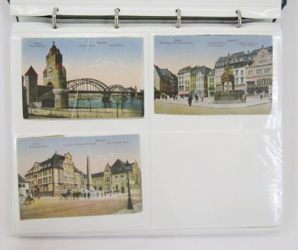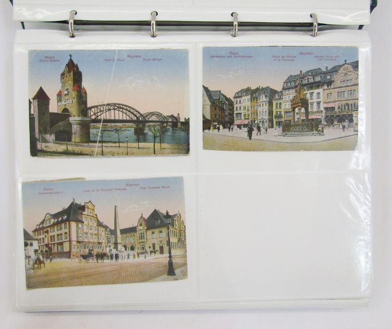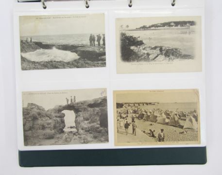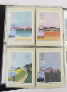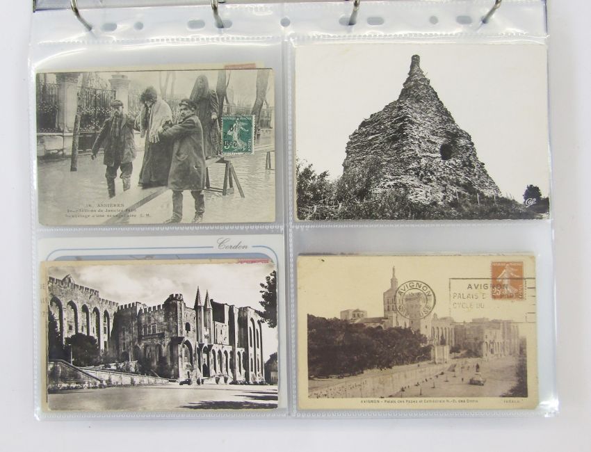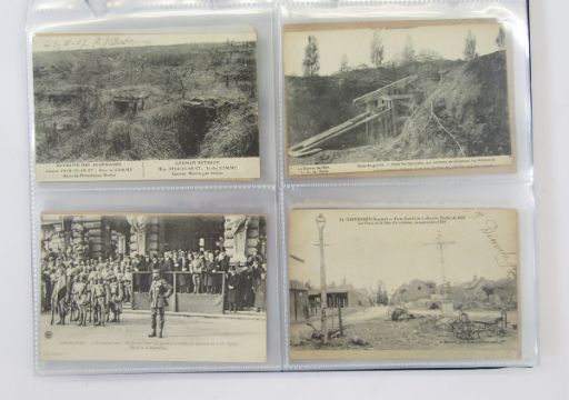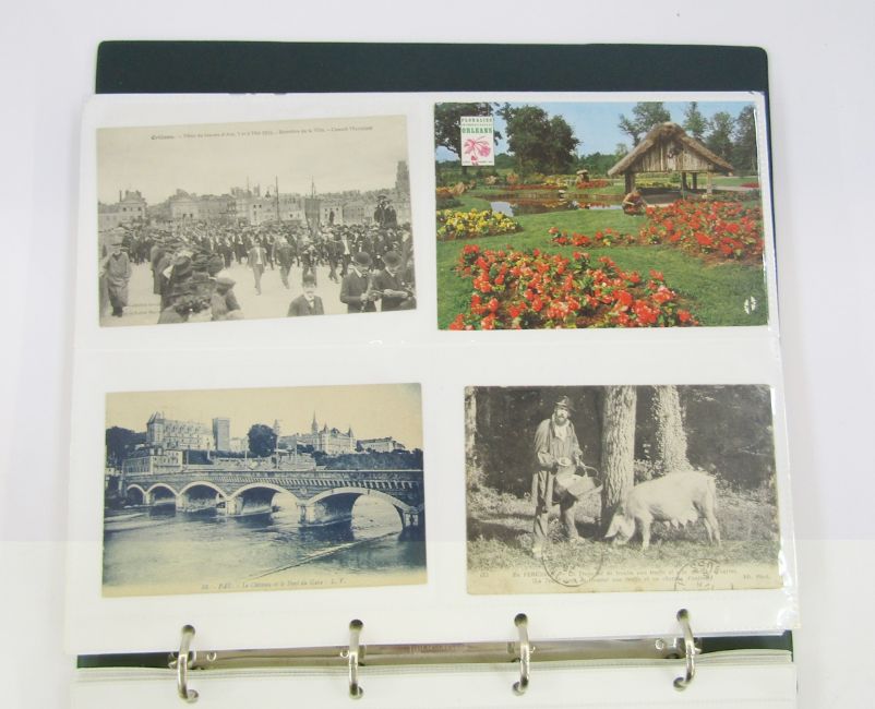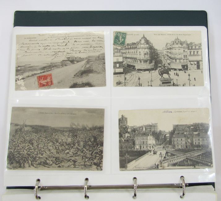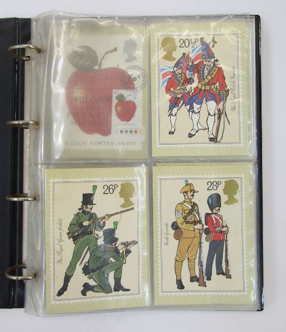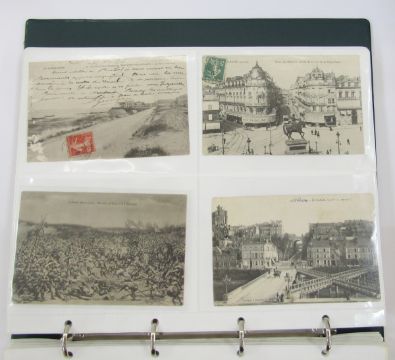 Quantity of PHQ postcards and various other postcards held within eight albums, PHQ cards dating from 1980's and later, the other postcards of topographical interest including continental scenes of France, including a scene of a WWI tank and other military scenes