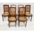 Set of six French mahogany and kingwood inlaid dining chairs, the cross-banded curved top rail with ormolu mounts, the cane seats with similar cross-banding to the frieze and gilt metal rosettes, four with cane backs and two with replaced upholstered backs, on reeded tapering supports (two with damage to canework of seats) (6)