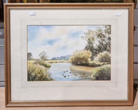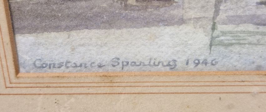 Five various framed pictures including an autumnal mountainous lake landscape by A Stevens, a landscape by Constance Sparling dated 1946, a pastoral landscape in watercolour and others, early 20th century and later (5)