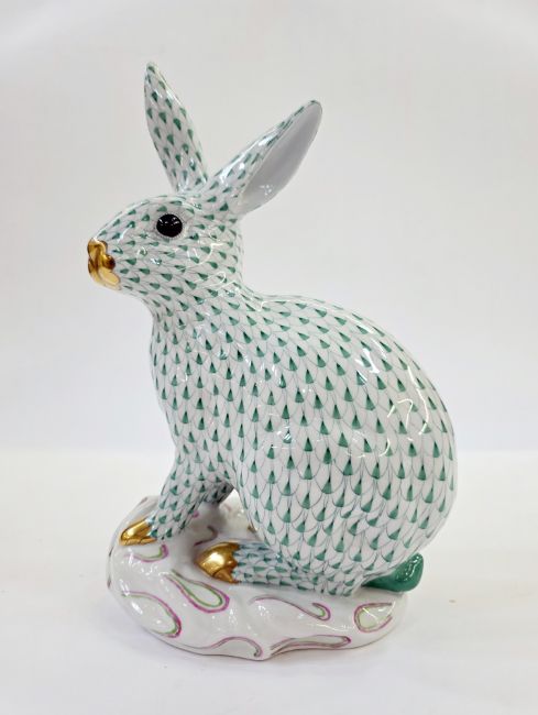 Herend porcelain seated rabbit, green fishnet with gilt highlights, 30cm high