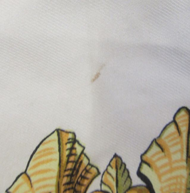 There are a few small marks and stains on the scarf (see additional catalogue photos), but the colours are still good and have not faded.