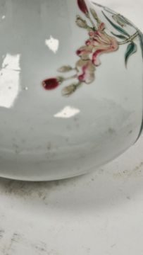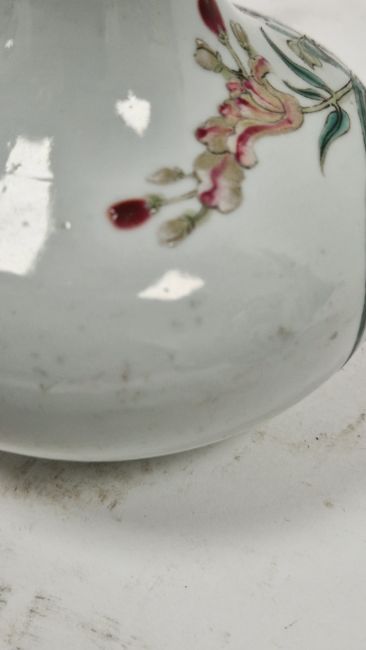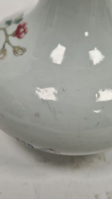 Some surface scratches and marks. Two chips to the glaze on the neck. Chip and repair to base ring. General wear and tear.