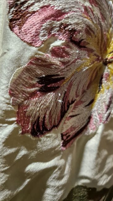 Curtains are interlined. Good overall condition, some pulled and loose threads, no obvious signs of stains. General wear and tear.