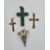 Edwardian 9ct gold, seedpearl and turquoise pendant, pierced and tapering with turquoise drop, 4.2cm high, 1.8g approx, a 9ct gold cross pendant, approx 1.2g, a gold-coloured metal and seedpearl cross pendant, and a malachite and gold-coloured metal cross pendant