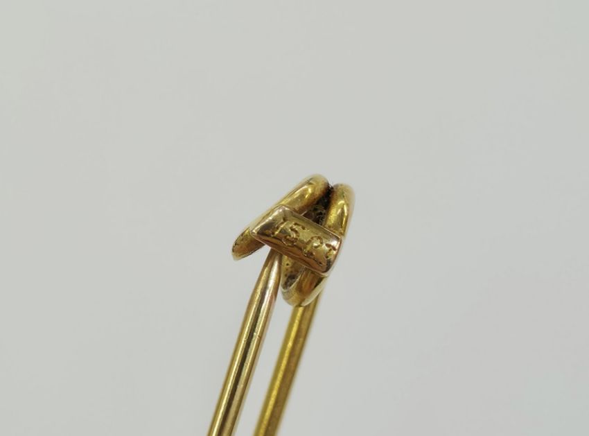 15ct gold and pearl bar brooch set with a single pearl of approx 6.3mm diameter, 5cm long, approx weight 3.3g