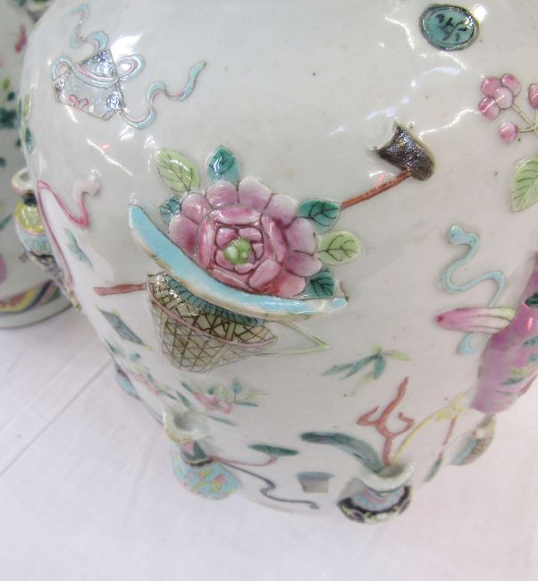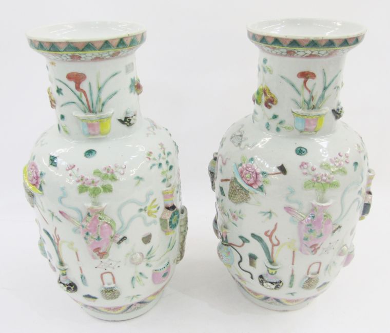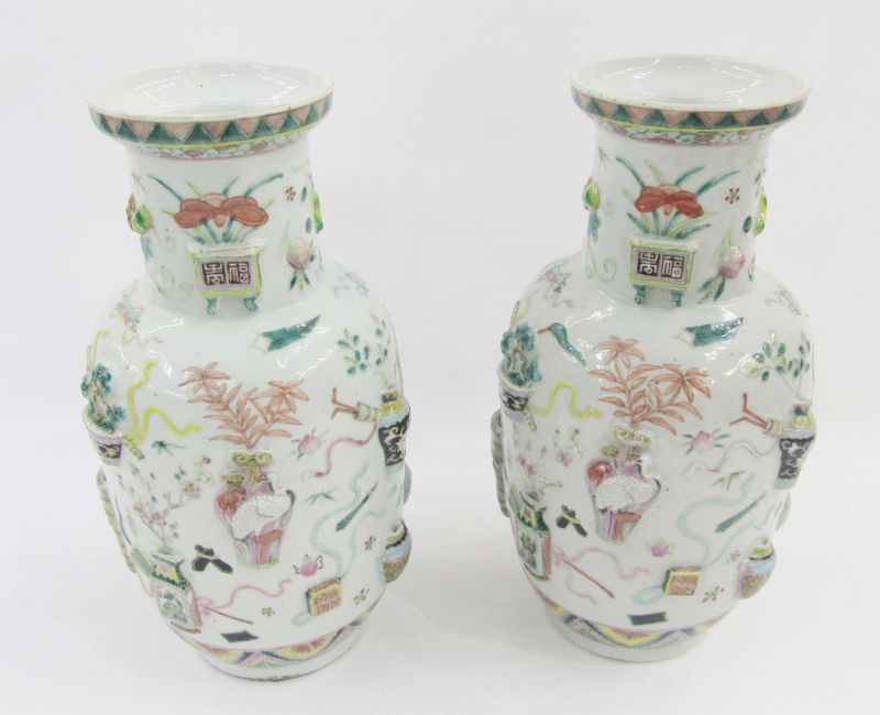 The vases are in good condition with no apparent damage or restoration. There are some possible chips or firing bubbles around the rim on one vase (see additional catalogue photo).