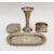 George V silver embossed pin dish, hallmarked Chester 1917, together with a silver napkin ring, silver spill vase with weighted base and a white metal lidded pill box (4)