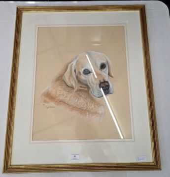 C. B. Lyttleton pastel drawing Head portrait of a yellow labrador, signed C. B. Lyttleton, 43 X 45cm