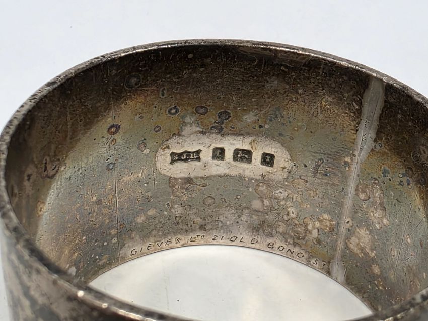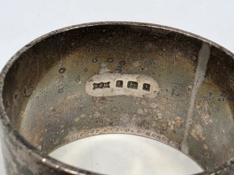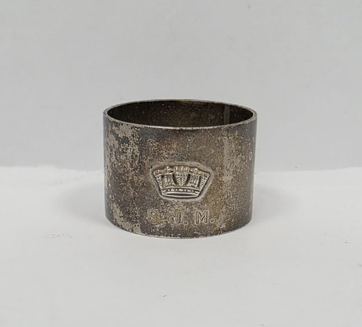 Victorian silver napkin ring, Birmingham 1893, S J Rose & Son, of plain form with a raised crown motif and engraved with initials, 3cm high, approx weight 2.06ozt