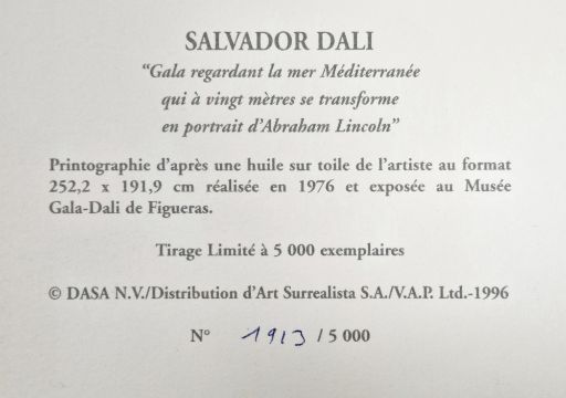 Salvador Dali (1904-1989)  Limited edition print  "Galatea aux Spheres", 788/5000, inscription and numbered verso, 66cm x 54cm overall, unframed  "Gala regardant la Mer Mediterranee", 1913/5000, numbered and inscribed verso, 80cm x 60cm overall, unframed "La Main de Dali Retirant une Toisons d'Or ...", 2700/5000, numbered and inscribed verso, 76cm x 54cm, unframed