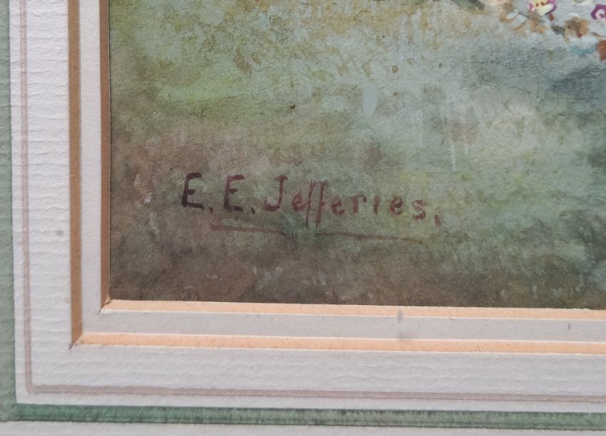 E E Jefferies (circa 1900-1920) Pair watercolour drawings Cottage garden scenes, signed, in single giltwood frame, each 27cm x 18cm (2)