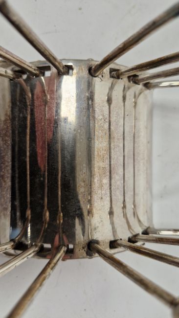 Good overall condition. Light surface scratches, accretions and some tarnishing. General wear and tear. Mechanism works properly. Item sits level.