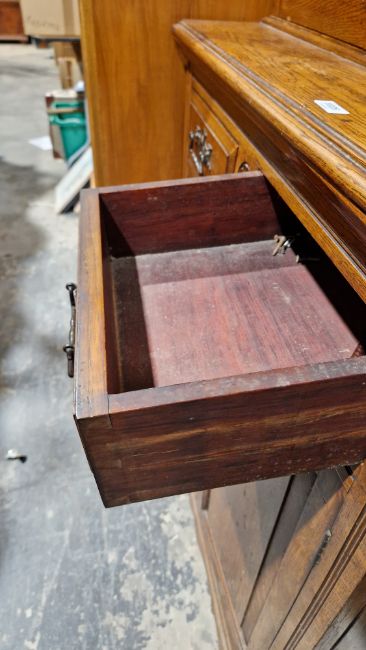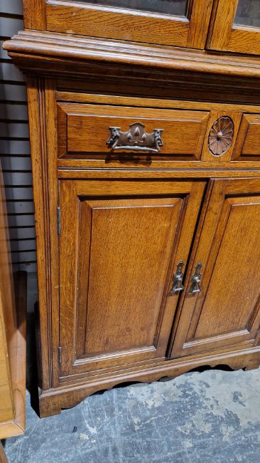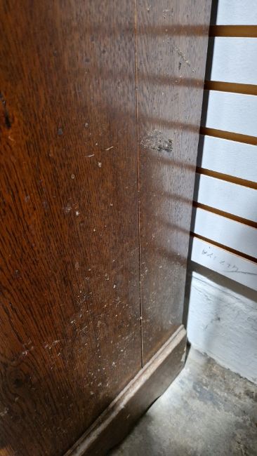 Surface scratches, scuffs and knocks. Split to right side of base. No worm, joints are solid, doors open and close as should. Top and base sections separate. General wear and tear.