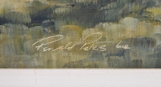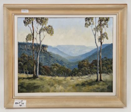 Ronald Peters (Australian, 1937-2003) Oil on board "Landscape Near Fitzroy Falls N.S.W.", signed and dated 1964 lower right, image size 39.5cm x 39.5cm