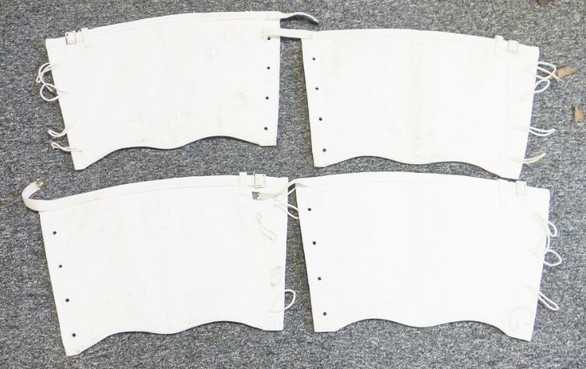 Collection of British Army white canvas gaiters, mostly stamped W. and A. J. T. 1953, with a broad arrow mark, approx 32 in total
