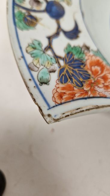 Small chips to rim, crack to body. Light surface marks, accretions and imperfections to glaze. Some wear to decoration. General wear and tear.