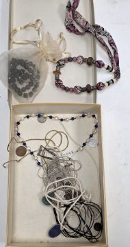 Mixed lot of costume jewellery, watches and collectable items including a Sabino opaque glass swan, stone set pendants, a Scottish pewter pendant, cased Accurist wristwatch and other items
