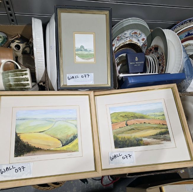 "Longwood Warren - Near Winchester", titled and signed within mount, framed and glazed and three further paintings by the same artist and various further prints and paintings